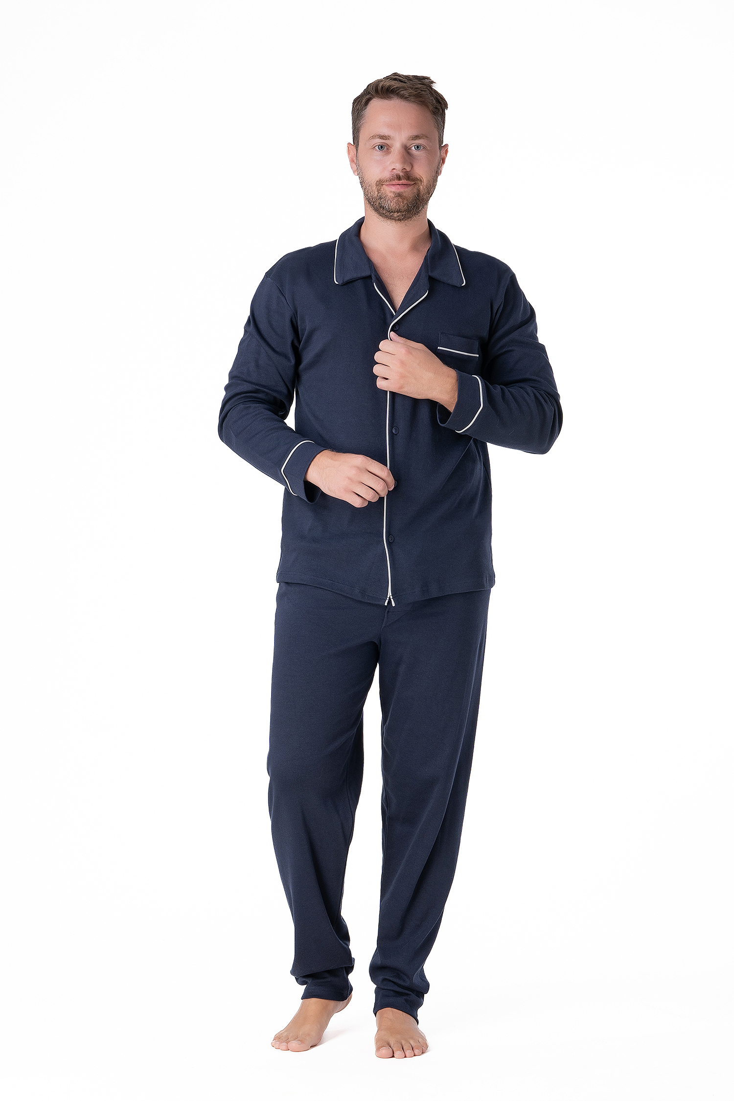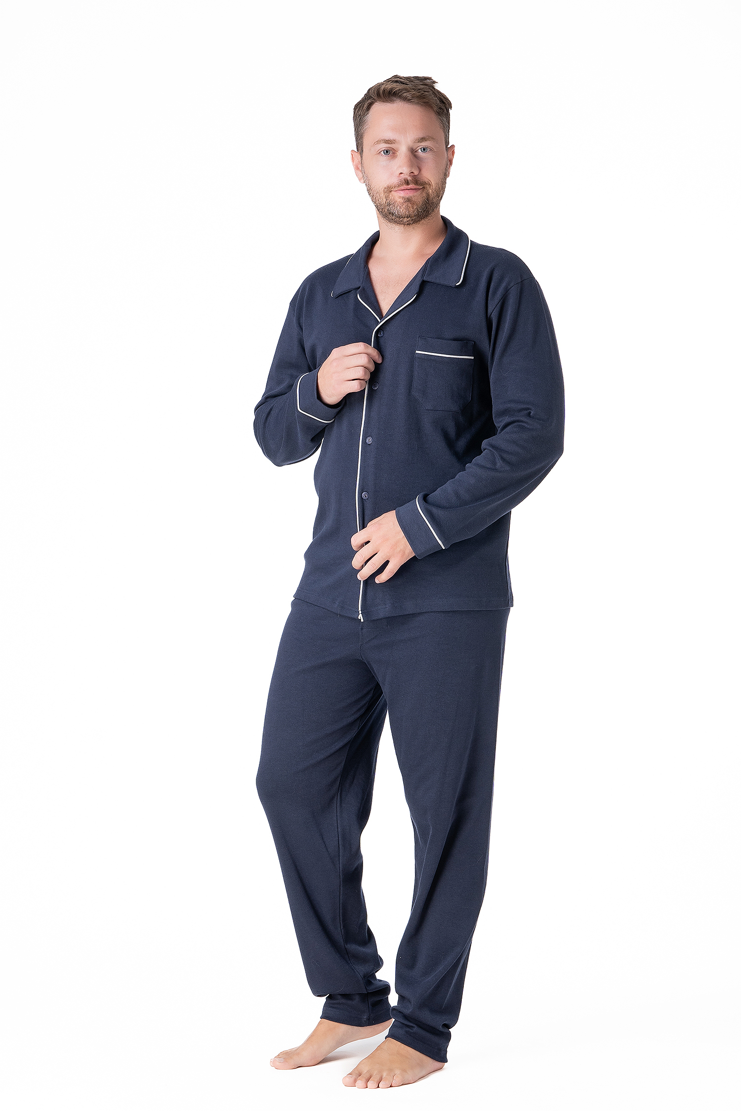 Ανδρική χειμερινή πιτζάμα με κουμπιά και πρακτική τσέπη.