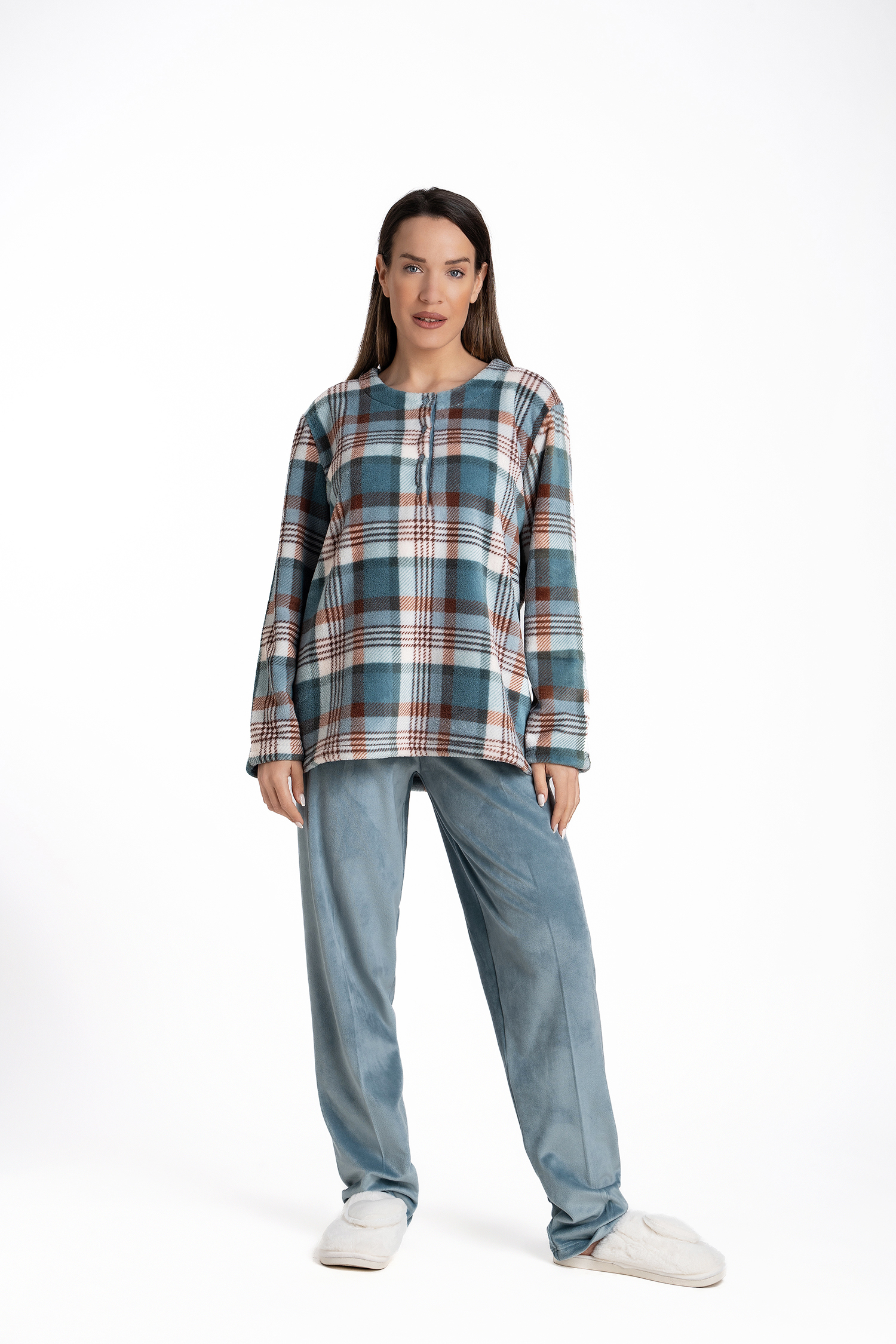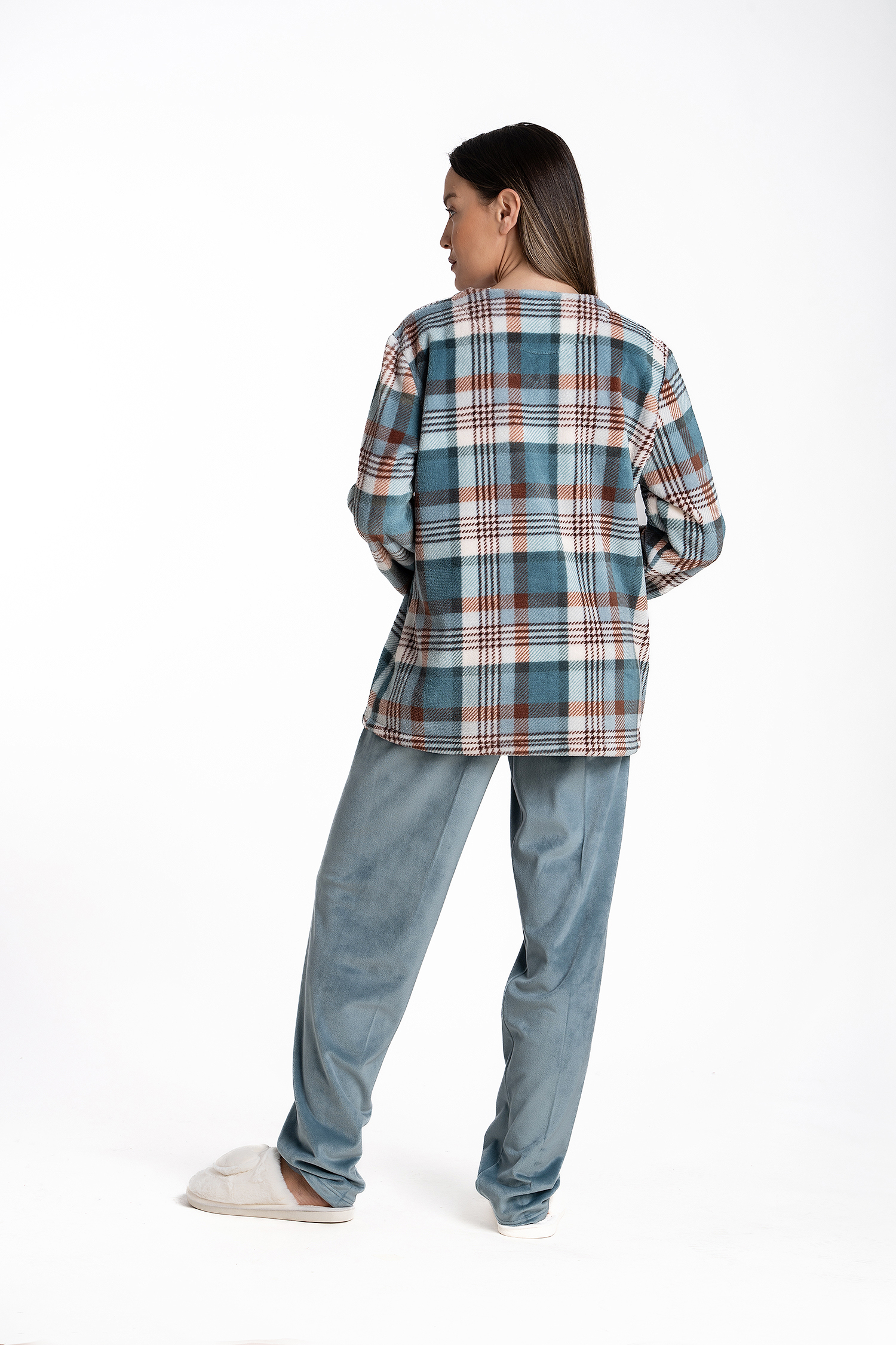 Μπλούζα καρό Παντελόνι με μαλακό λάστιχο μέσης και κλασσική άνετη γραμμή.